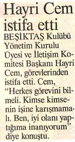 Basın HaberleriBeşiktaş Haberleri Hayri Cem istifa etti – 26.08.2001 – Hürriyet By hayricem - 26 Ağustos 2001 0 762 Facebook Twitter Pinterest WhatsApp